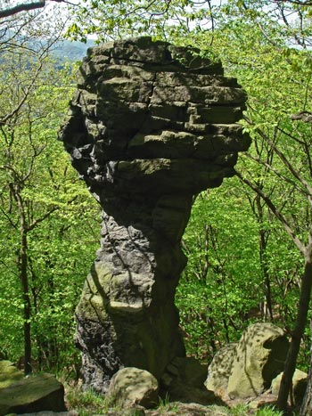 V prudkém lesnatém svahu s četnými skalními výchozy a sutěmi v jihozápadním výbežku vrchu Magnetovec (521 m) je nápadný, 6-8 m vysoký bazanitový skalní hřib. Na tenké "noze" spočívá mohutný "klobouk", budovaný kompaktní horninou, která více odolává větrání. Pásmo skal tu vytváří malebná seskupení věžovitých útvarů s výskytem reliktních borovic na vrcholech.