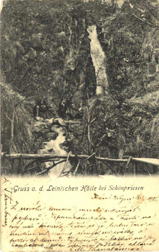Romantické údolí s 8 metrů vysokým vodopádem mezi Krásným Březnem a Mlýništěm.